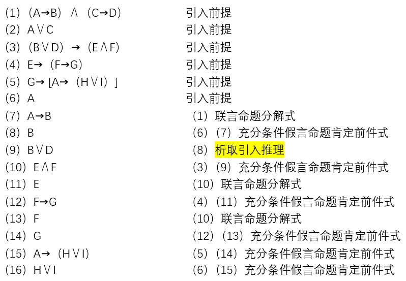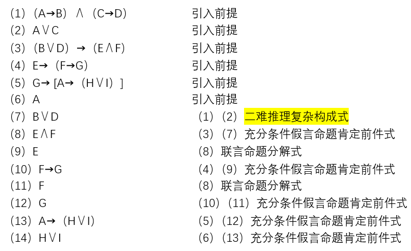 4、推出新结论时,如果使用了不止一个前提,这些前提都在要右边的说明中列出。