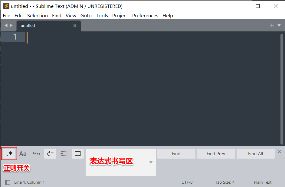 在 表达式书写区(即查找内容 文本框)添加 正则表达式